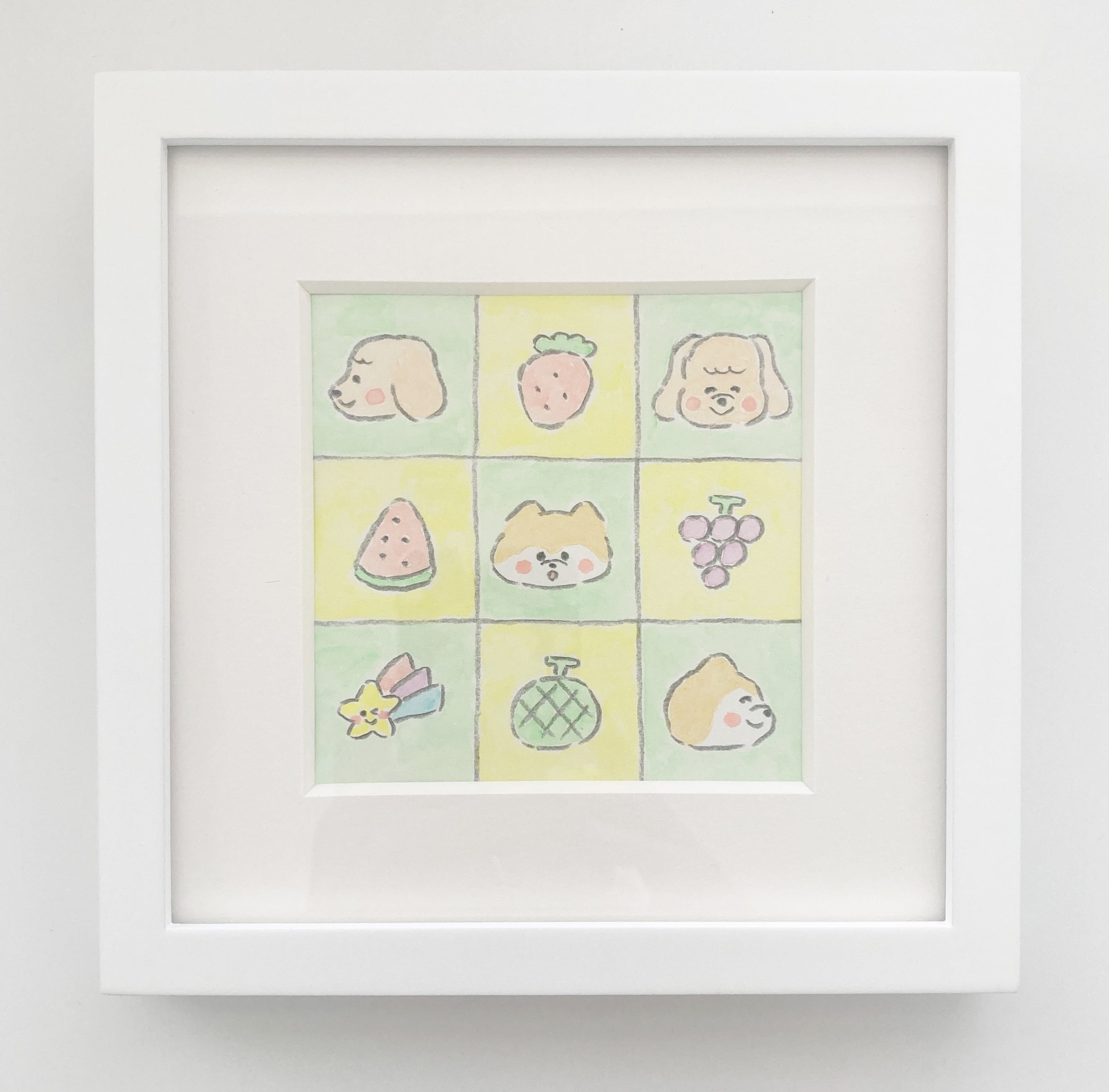 白い額装、そしてサイズも15cm角サイズなので、どんな場所にも飾りやすいと思います◎
